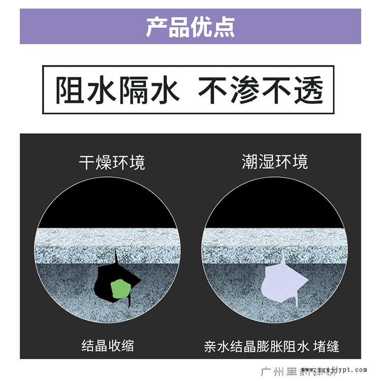 1、有高度的滲透性能,迎水面背水面均可使用。可滲透進混凝土結(jié)構(gòu)內(nèi)部,形成密實的 性防水層,有效防止水、潮氣、油脂、酸堿、霉菌、紫外線等的侵蝕,防止鋼筋銹蝕。
