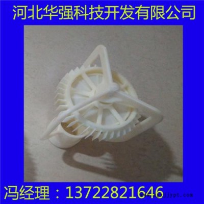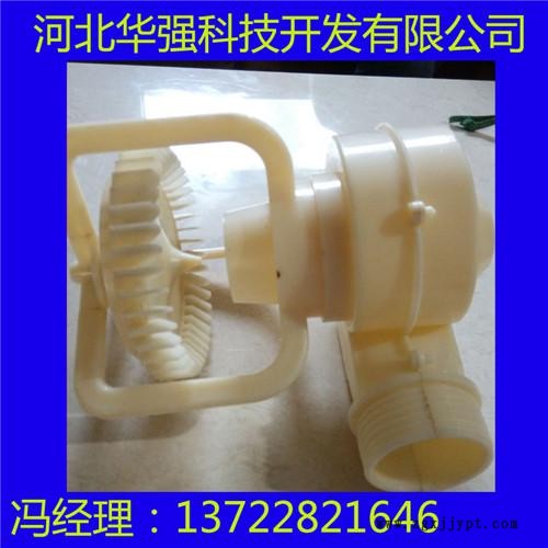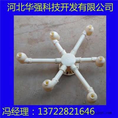 我公司生產(chǎn)各種冷卻塔噴濺裝置ABS三濺式噴頭,具有與配水管相連的承插式接口,承插接口采用鉆尾絲固定,在承插接口的下部還依次同軸間隔設置有外徑依次變小的大濺水盤、小濺水盤和錐形辟水頭;并且由至少兩支圓周排列立式設置的連桿固定在承插接口上,在大濺水盤和小濺水盤上還分別設置有與錐形管嘴同軸且與錐形管嘴下口內(nèi)徑相比內(nèi)徑依次變小的大漏水孔和小漏水孔,大濺水盤和小濺水盤為弧面朝上的半球形,錐形辟水頭為錐角向上的錐形。特點: 改進型噴濺裝置的工作原理是:壓力水沿切向水平進入蝸型噴頭,在腔體內(nèi)旋轉并向下作回旋運動,從下方噴嘴噴出。水噴出后形成一傘狀旋轉水體,沖擊濺水條及濺水葉片,濺散成均勻分布霧狀細小水滴,下落到填料頂面。散熱效果好,特別適用于電廠冷卻水。