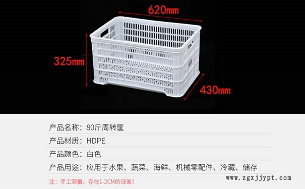 筐體的鏤空露眼設(shè)計合理,不論是瓜果蔬菜周轉(zhuǎn)運輸過程之中,可以保持良好的完整性,外形不易遭到擠壓破壞。并且透氣通風(fēng)效果好,可以在保鮮、冷凍庫之中及時使貨物降溫,上下之間多層貨物同理。