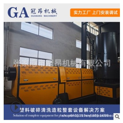 該造粒機(jī)組主要針對(duì)各類PP PE編織袋 塑料袋 棚膜 地膜 保鮮膜 收縮膜等回收料破碎清洗和造粒。