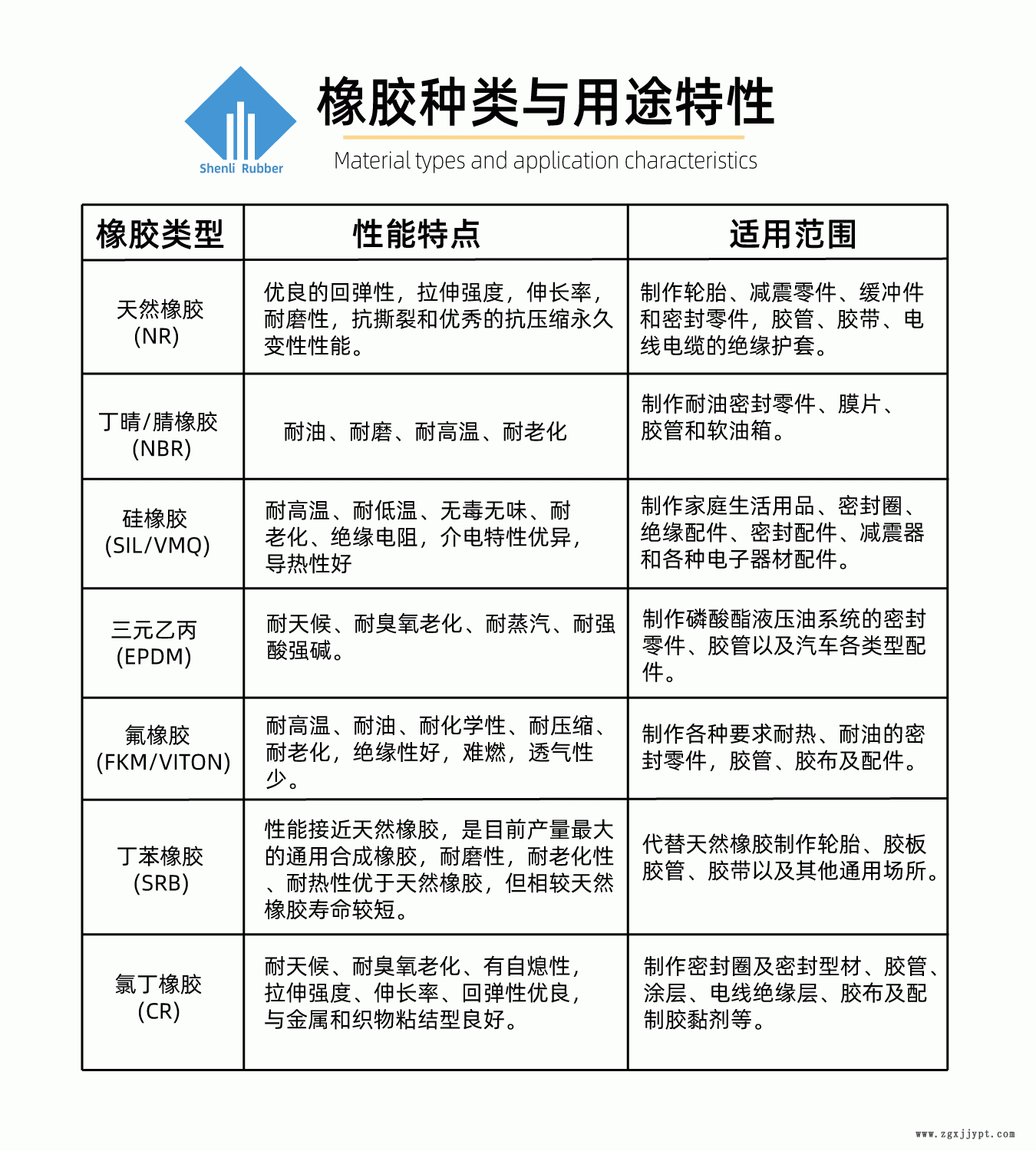 原材料類有;天然橡膠、硅橡膠、丁晴橡膠、氯丁橡膠、三元乙丙橡膠、順丁橡膠、丁笨橡膠、硅橡膠、氟橡膠等!