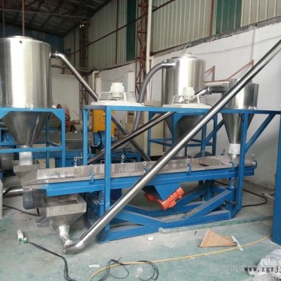 此機(jī)臺(tái)用於PVC,EVA,TPR,鈣母料等塑膠原料的生產(chǎn),包括主機(jī),雙腕入料,模頭切粒等系統(tǒng)將密煉機(jī)攪拌好的原料經(jīng)雙腕擠入造粒內(nèi)經(jīng)螺桿擠出后切成粒子,此機(jī)臺(tái)操作簡(jiǎn)單。本機(jī)臺(tái)的生產(chǎn)原理:各種原料、助劑投入密煉機(jī)混煉成熟——倒入盛斗式輸送機(jī)——輸送到造粒主機(jī)料斗——雙腕強(qiáng)迫擠入造粒機(jī)主螺桿——主螺桿將料勻速通過(guò)造粒機(jī)模面擠出——風(fēng)切式切粒機(jī)勻速轉(zhuǎn)動(dòng)切粒——風(fēng)機(jī)1輸送冷卻到雙層通水冷卻桶1——風(fēng)機(jī)2輸送冷卻到雙層通水冷卻桶2——風(fēng)機(jī)3輸送冷卻到振動(dòng)篩旋風(fēng)桶到振動(dòng)篩——風(fēng)機(jī)4輸送冷卻到不銹鋼儲(chǔ)料桶或者單層不銹鋼臥式冷卻攪拌桶攪拌——打包儲(chǔ)存。