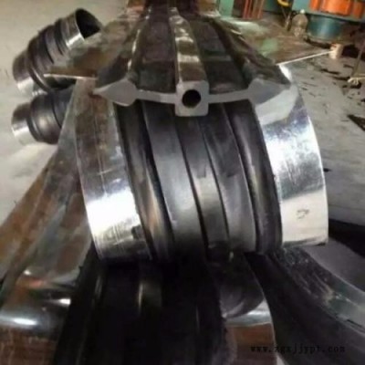 在施工中由于混凝土澆筑時(shí)的巨大振動(dòng)力和不易固定,會(huì)使普通橡膠止水帶產(chǎn)生移位、扯離、扭轉(zhuǎn)而出現(xiàn)松動(dòng)和脫落,以致在水壓較大的情況下會(huì)產(chǎn)生滲漏現(xiàn)象,而采用鋼邊橡膠止水帶時(shí),由于鋼帶與混凝土、鋼帶與橡膠之間不會(huì)產(chǎn)生新的滲漏縫。因此,鋼邊橡膠止水帶增強(qiáng)了結(jié)構(gòu)變形的防滲性能,對(duì)整個(gè)工程的防滲止水起到了重要的質(zhì)量保證作用,同時(shí)在安裝后具有良好的自定性好,克服了止水帶需用多方固定的工序,使施工安裝更加的方便。生產(chǎn)工藝在鋼邊橡膠止水帶的生產(chǎn)過(guò)程,我們可以先將經(jīng)過(guò)先期處理的鍍鋅鋼帶插入橡膠中間硫化成形,兩者之間的粘結(jié)力的牢固性,具有明顯防滲止水方面的效果。中埋式鋼邊止水帶的中間橡膠體在結(jié)構(gòu)變形時(shí)被壓縮、拉伸、變形,而起到密封止水作用;鍍鋅鋼帶與混凝土有著良好的粘附性,不易脫落和松動(dòng),使止水帶能承受較大的拉力和扭力。