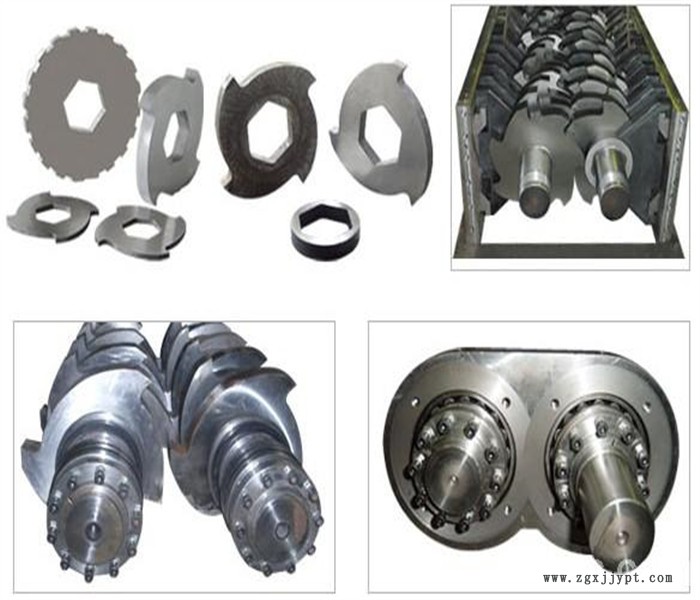 主軸有兩端軸承支撐,電機(jī)經(jīng)齒輪箱傳遞給主軸,旋轉(zhuǎn)的主軸帶動(dòng)螺旋排列的刀具,主軸的旋轉(zhuǎn)帶動(dòng)刀具嚙合,將物料撕碎,完成切削任務(wù)。電控部分安裝有倒轉(zhuǎn)自動(dòng)控制裝置,克服因塞料卡機(jī)的重大技術(shù)難題。為提高使用壽命和切削能力,主軸和刀具均經(jīng)過調(diào)質(zhì)處理。