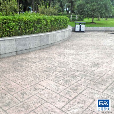 產(chǎn)品是用凹凸仿石紋理的EM造型模將磚、石、木紋理印在混凝土表面。地面硬化后,用高壓水槍或洗滌劑沖洗EM彩色脫模粉,待地面干燥后用EM混凝土封閉劑罩面(輥涂)。它屬于整體澆注式裝飾性路面,繼承了混凝土的優(yōu)良特性,賦予普通混凝土豐富的色彩和磚瓦質(zhì)感。它具有荷載高、造價低、施工方便、外觀美觀等特點,適合替代傳統(tǒng)的硬質(zhì)路面。