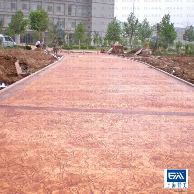 該產(chǎn)品是一種新工藝地面材料,可依托EM彩色強(qiáng)化料、EM脫模材料、成型模具、工具和異美壓花地板保護(hù)劑在混凝土表面,鋪設(shè)混凝土?xí)r可使大理石、板巖、瓷磚、磚石、巖石、卵石等自然效果在表面產(chǎn)生。