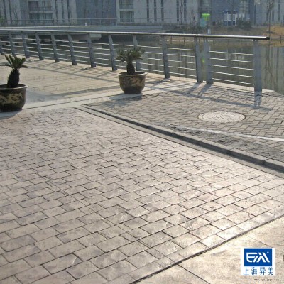 該產(chǎn)品是近年來流行和使用較多的綠色健康地面。它是在普通現(xiàn)澆混凝土表面硬化前,采用EM彩色強化料鋪貼在混凝土表面,并與混凝土通過鐵抹面、壓合而成,使混凝土表面著色、加固。