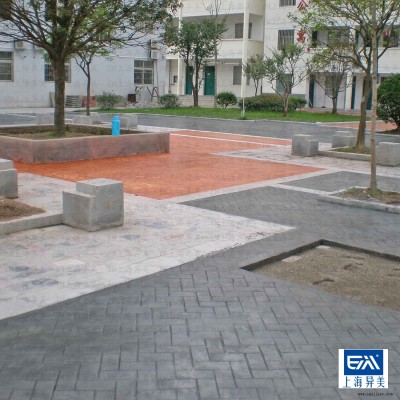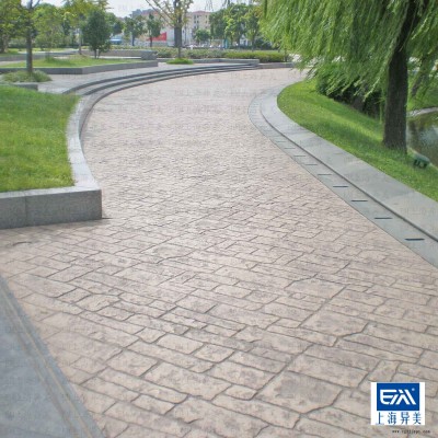 本產(chǎn)品采用異美公司提供的彩色增強(qiáng)劑、彩色脫模粉、保護(hù)層劑,可在新水泥地面上產(chǎn)生多種彩色石材鋪裝效果。具有施工簡(jiǎn)單、鋪筑速度快、工程造價(jià)低、耐久性好、防滑美觀、裝飾效果好等優(yōu)點(diǎn)。