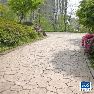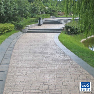本產(chǎn)品采用異美公司提供的彩色增強(qiáng)劑、彩色脫模粉、保護(hù)層劑,可在新水泥地面上產(chǎn)生多種彩色石材鋪裝效果。具有施工簡單、鋪筑速度快、工程造價低、耐久性好、防滑美觀、裝飾效果好等優(yōu)點。