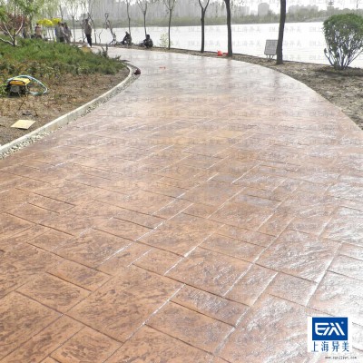 該產(chǎn)品是一種新工藝地面材料,可依托EM彩色強(qiáng)化料、EM脫模材料、成型模具、工具和異美壓花地板保護(hù)劑在混凝土表面,鋪設(shè)混凝土?xí)r可使大理石、板巖、瓷磚、磚石、巖石、卵石等自然效果在表面產(chǎn)生。