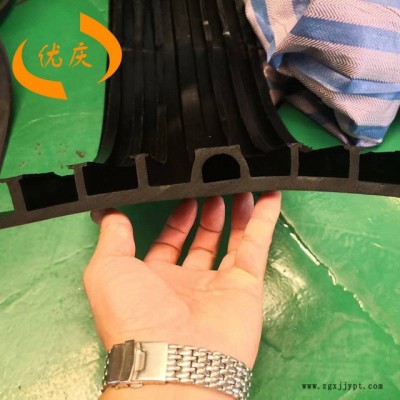 橡膠止水帶是采用天然橡膠與各種合成橡膠為主要原料,摻加各種助劑及填充料,經(jīng)塑煉,混煉, 壓制成型,其品種規(guī)格較多,有橋型、山型、P型、R型、U型、Z型、乙型、T型、H型、E型、Q型等。該止水材料具有良好的彈性,耐磨性、耐老化性和抗撕裂性能,適應(yīng)變形能力強(qiáng)、防水性能好,溫度使用范圍-45-+60。當(dāng)溫度超過(guò)+70,以及強(qiáng)烈的氧化作用或受油類等有機(jī)溶劑侵蝕時(shí),均不得使用該產(chǎn)品。