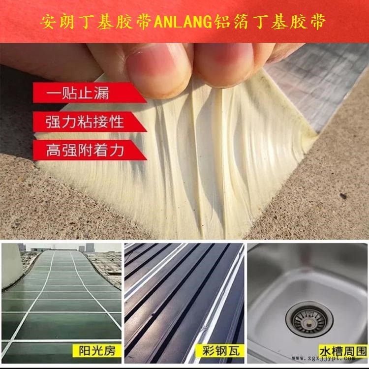 6 復(fù)合鋁箔的丁基膠帶適合于各種土木屋面,彩鋼,鋼構(gòu),防水卷材,PC板等在陽光照射下的防水密封