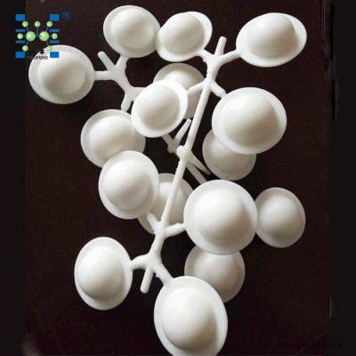 液面覆蓋球填料主要用于液面上層履蓋作用。如:用于酸堿貯罐中,可以防止酸堿氣體外溢,揮發(fā)、減少酸堿氣體對外環(huán)境的污染,和節(jié)約酸堿材料的作用;用于除鹽水中,使空氣和水隔離可以減少空氣中的CO2,O2及灰塵雜質(zhì)等對除鹽水的污染,保證水質(zhì)量。適用于各種臥式酸貯槽、水處理中的凝儲水箱、除鹽水箱,大程度的減少酸霧、空氣中的二氧化碳和氧對水的污染,達到保護水質(zhì)、節(jié)約能源,凈化環(huán)境的作用。