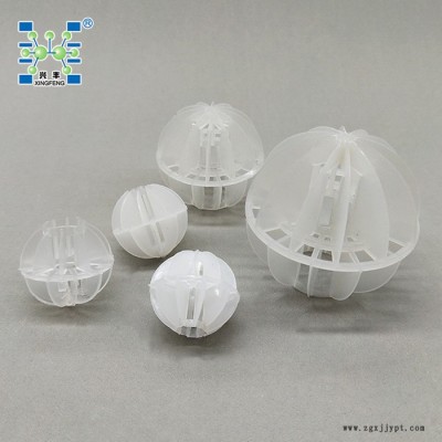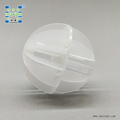 聚丙烯多面空心球是由二個半球合成一個球形,每個半球由若干個半扇形葉片組成,由兩個半球的扇形葉片又相互錯開。這種填料的優(yōu)點是比表面積較大,因此被較多地用于電廠水處理脫CO2設(shè)備中。