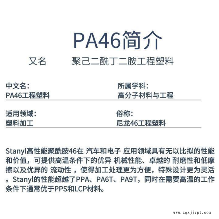 | 用途級別 : | 汽車部件、電子電器部件、薄膜級、板材級、運(yùn)動器材、瓶蓋專用料、流延膜專用料、家電部件、電線電纜級、電動工具配件 | 品牌 : | PA46 |