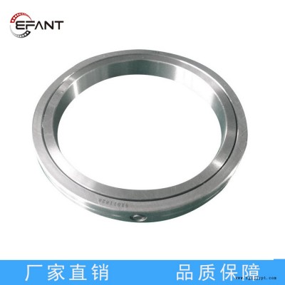 交叉滾子軸承是圓柱滾子在呈90o的V形溝槽滾動面上通過隔離塊被相互垂直的排列,所以交叉滾子可承受徑向負荷、軸向負荷及力矩負荷等多方向的負荷。內(nèi)外圈的尺寸被小型化,極薄形成更是接近于極限的小型尺寸,并且具有高鋼性,且精度可達到P4、P2級。因此適合于工業(yè)機器人的關節(jié)部和旋轉部、機械加工中心的旋轉臺,機械手旋轉部、精密旋轉工作臺、醫(yī)療機器、計算器、IC制造裝置等設備。