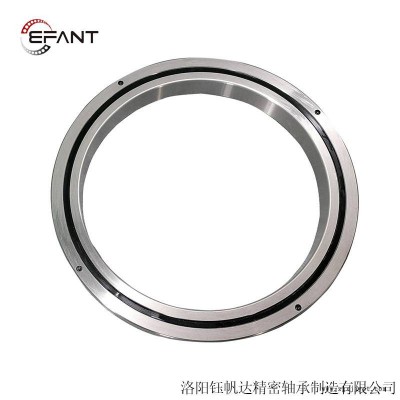 洛陽鈺帆達精密軸承廠家直銷各種系列的交叉滾子軸承,精密交叉滾子軸承,交叉滾柱軸承,十字交叉滾子軸承,交叉圓柱滾子軸承,薄壁交叉滾子軸承,高剛 叉滾子軸承,超輕超薄型交叉圓柱滾子軸承等,每種軸承型號都有對應的參數(shù)表及圖紙供您參考。在交叉滾子軸承中,因圓柱滾子在呈90度的V型溝槽滾動面上通過間隔保持器被相互垂直排列。這種設計使交叉滾子軸承就可以承受徑向負荷、軸向負荷及力矩負荷等所有方向的負荷。同時內(nèi)外套圈的尺寸被小限度的小型化,特別極薄形式是接近于極限的小型尺寸,而且有高剛性,所以非常適合于工業(yè)用機器人的關節(jié)部位或者旋轉部位、機械加工中心的旋轉工作臺、機械手旋轉部位、精密旋轉工作臺、醫(yī)療儀器、計量器具、IC制造裝置等廣泛用途。
