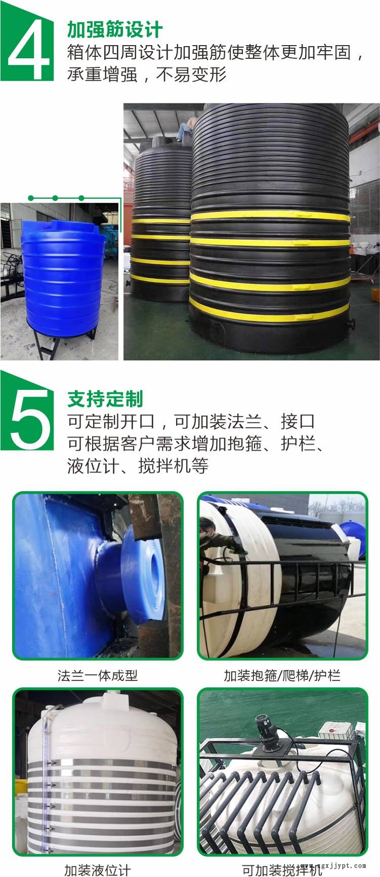 6、PE水箱不漏液:出水口接頭使用與桶體相同材質(zhì),采熱融接合法加工,可省卻有漏液的麻煩。