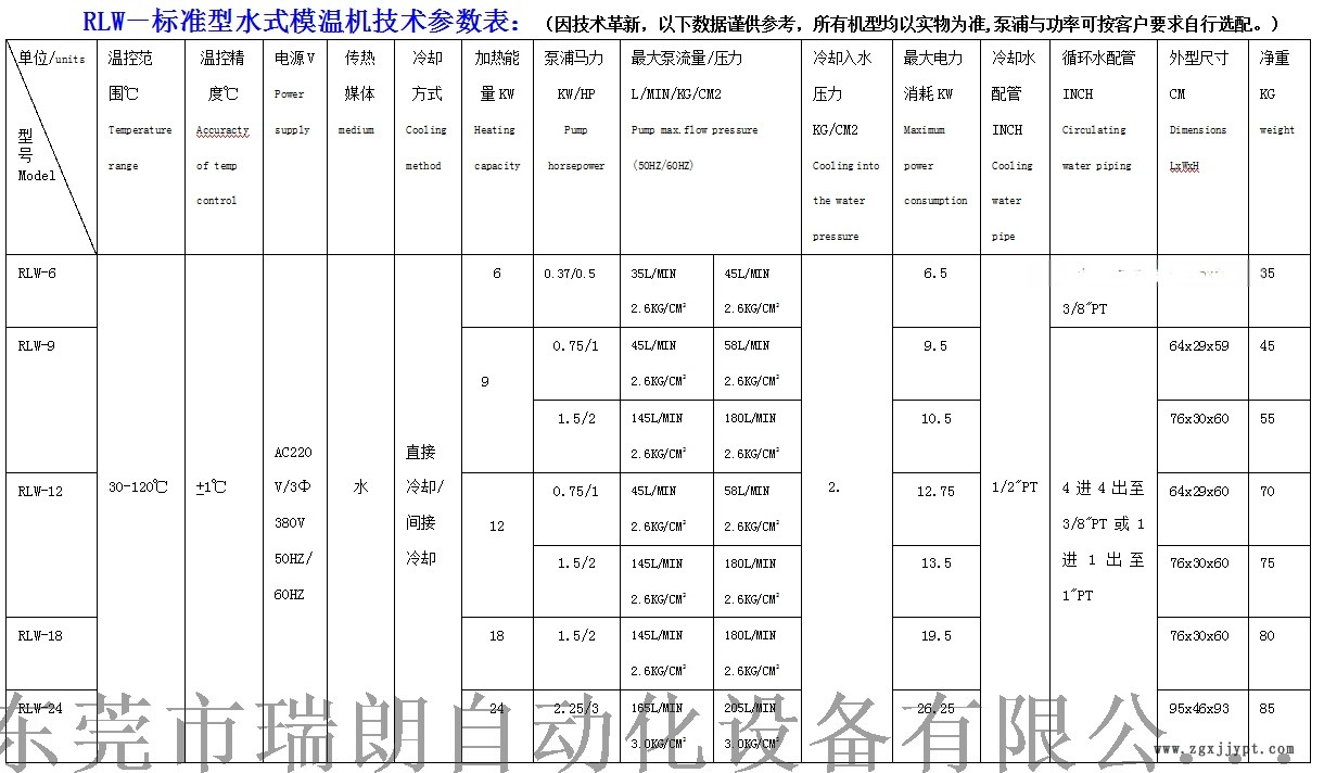 注塑模溫機,注塑模具循環(huán)機,模具溫度控制機技術參數(shù)型號:RL-12H