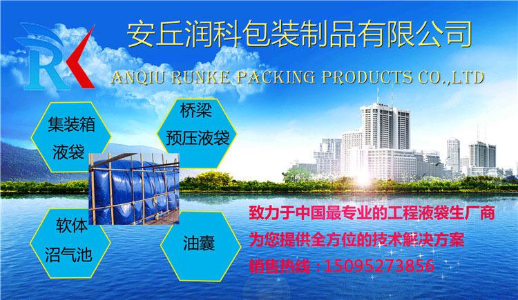 安丘市潤(rùn)科包裝制品有限公司是一家集科研開發(fā),設(shè)計(jì),生產(chǎn),銷售為一體的專業(yè)化液袋制造企業(yè)。主要生產(chǎn)水囊,液袋,集裝箱液袋,橋梁預(yù)壓水囊,魚箱,氣袋,油囊,飲用水囊,大型貯罐,充水塑料堤壩,軟體沼氣池等產(chǎn)品,以及液袋設(shè)備的加工與制造。