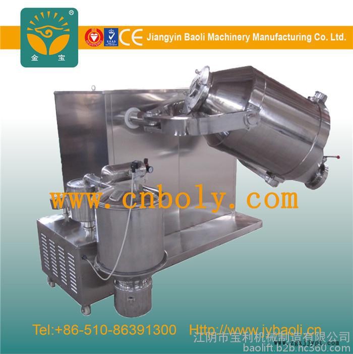 該機(jī)是一種無(wú)菌、無(wú)塵,全封閉的高效節(jié)能混合機(jī)。物料在混合時(shí)無(wú)離心力的作用和比重偏析及分層、積聚現(xiàn)象。裝載量大、混合時(shí)間短、效率高。
