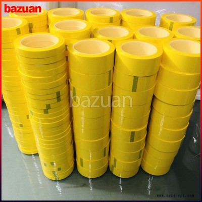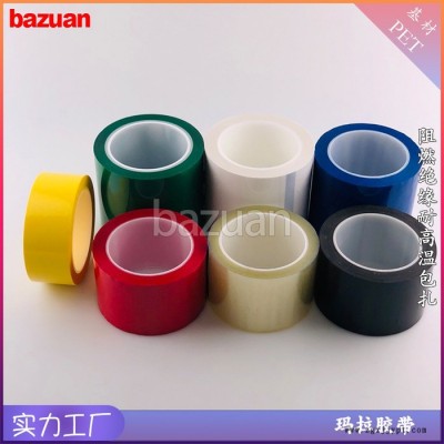 簡 述:瑪拉膠帶,又叫麥拉膠帶、火牛膠帶、PET馬拉膠帶。以聚酯薄膜(PET Film)為基材涂布丙烯酸聚合物壓敏膠制作而成的耐高溫高壓阻燃型絕緣膠帶。用于變壓器,馬達(dá),電容器等各類電機(jī),電子阻件之絕緣包扎,軟包的鋰電池的包扎。