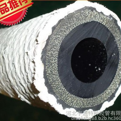 水冷電纜護套膠管,水冷電纜絕緣膠管。內(nèi)層為白天然橡膠內(nèi)膠層,增強層為纖維編織,外膠層為白天然橡膠。外包白石棉。