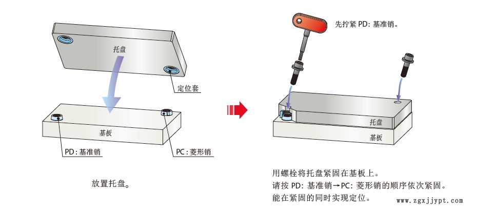 *無需進行旋轉(zhuǎn)方向定位時,只需使用基準銷即可實現(xiàn)G精度定位