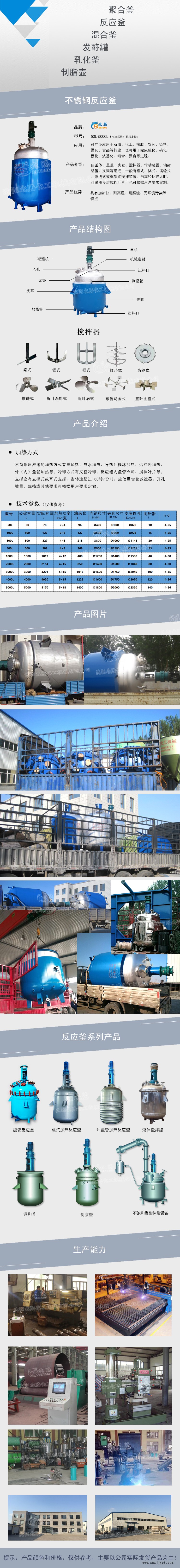 電加熱型,夾套型,外半管型,內盤管型,容積為50L-10000L