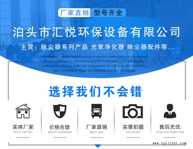 泊頭市匯悅環(huán)保設備有限公司總經(jīng)理攜全體員工愿為"凈化生存環(huán)境,還人類一片清潔的天空"做出不懈的努力!