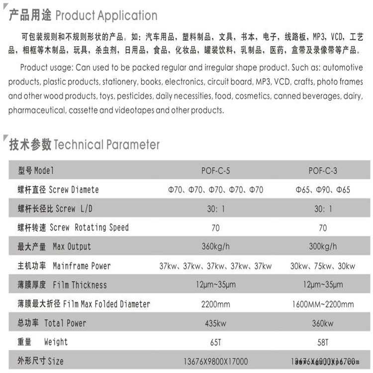 | 適用原料 | pof |