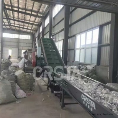 PET瓶回收處置機(jī),批量處理PET廢舊礦泉水瓶去標(biāo)簽粉碎清洗片料