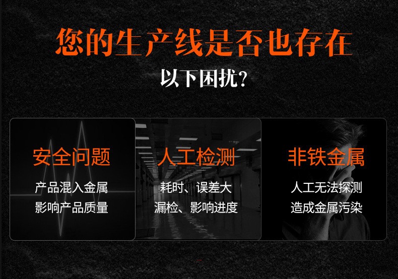 聯(lián)系電話:186-6410-1787 始于行業(yè) 食品、藥品、玩具、服裝、制鞋、化工皮革、針織、紙制品等行業(yè)檢測(cè)產(chǎn)品或原料在生產(chǎn)加工過(guò)程中混入的金屬雜質(zhì)。