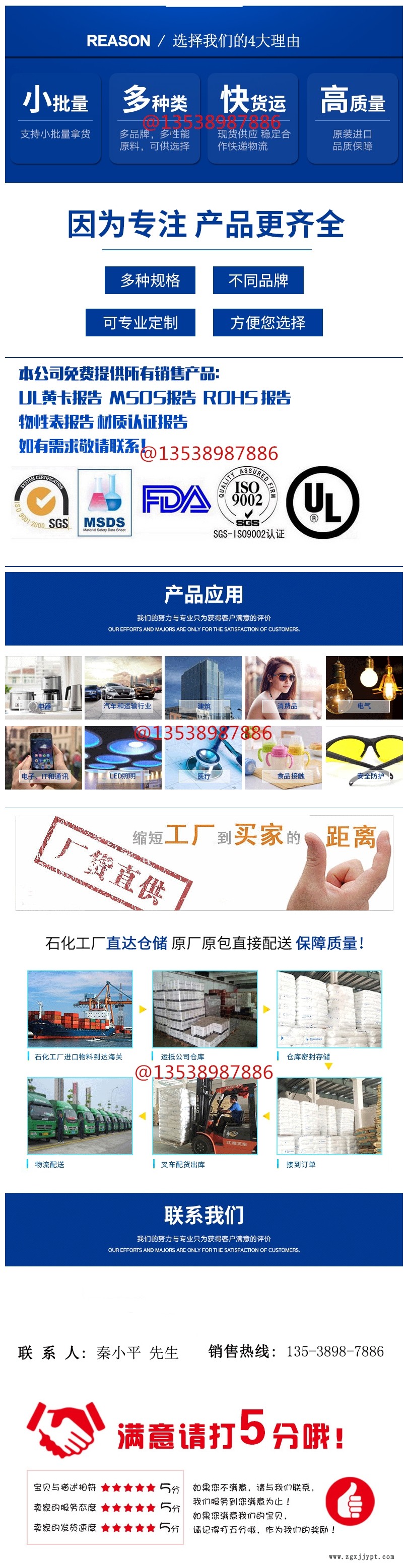 我公司所售原料均可提供產(chǎn)品的物性表、SGS報(bào)告、UL黃卡、材質(zhì)證明及物質(zhì)安全資料(MSDS)、歐盟ROHS、FDA食品醫(yī)療、ASTM&ISO性能測試報(bào)告、SONY環(huán)保認(rèn)證等信息,由于數(shù)據(jù)庫龐大,未能提供下載,更多資料請聯(lián)系我們。