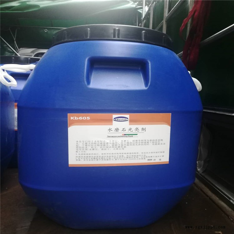 | 水磨石拋光液光亮劑:本品專門用于水泥制品、大理石、水磨石、耐磨骨料等為基礎(chǔ)表面拋光。它**大的特點(diǎn)**是滲入地坪,在干燥的過程中和混凝土粘結(jié)在一起,干燥后經(jīng)過物理拋光,能賦予地坪超亮的光澤的同時(shí),還能提高表面的防水、防塵、抗污保潔和抗磨性能. 適用范圍:水磨石,混泥土,金鋼砂,大理石等 施工方法: 1.先清除地面的油污、涂料和松散結(jié)構(gòu)等影響滲透的物質(zhì),有坑洼小洞和崩爛裂縫 的得用高強(qiáng)修補(bǔ)砂漿料或環(huán)氧樹脂補(bǔ)平修整,然后徹底清掃干凈。 2.用專業(yè)的石材翻新研磨機(jī)對(duì)施工地面進(jìn)行打磨細(xì)化處理,可用粗細(xì)磨片逐步打磨 替換,直至表面打磨平滑細(xì)膩即可,磨片可從50~2500目之間替換. 。