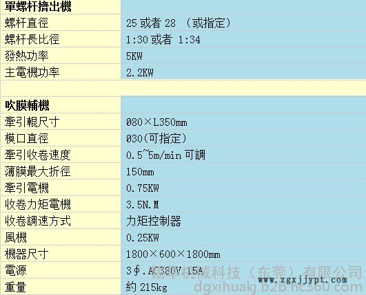 | 型號 | XH-430實驗型吹膜機 |