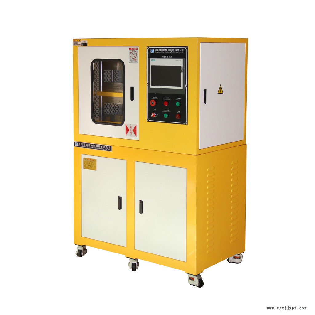 將原料放于鑄模內(nèi),置于本機(jī)兩電熱板間,依據(jù)原料性質(zhì)設(shè)置一定壓力及溫度,使原料成型試片以供試驗(yàn),做為生產(chǎn)配料之依據(jù)。