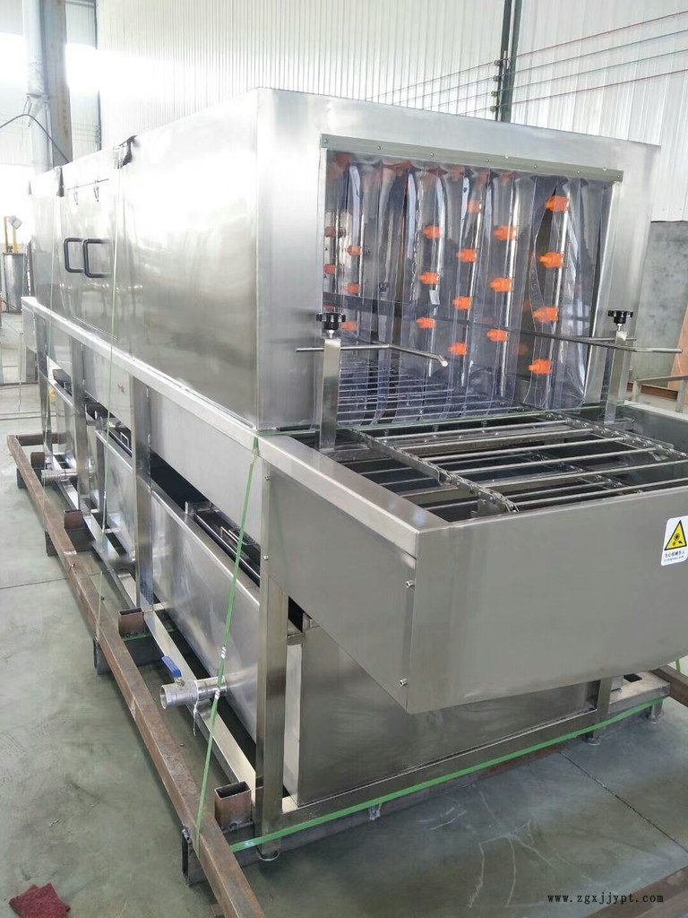 1. 清洗機(jī)一高壓噴淋沖洗為主要清洗方式,以約80℃熱堿水為主要洗滌劑,以約80℃熱水為主要清洗力進(jìn)行清洗;