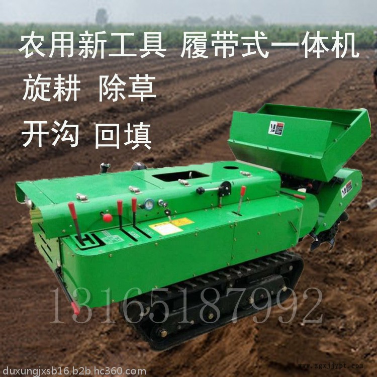 多功能 履帶式開(kāi)溝施肥機(jī)安裝上不同的配件可以進(jìn)行單獨(dú)旋耕、回填、單獨(dú)開(kāi)溝、施肥、也可混合搭配使用。產(chǎn)品結(jié)實(shí)耐用,性能優(yōu)越,操作方便.耐用:機(jī)身加厚,密,履帶式行走,可進(jìn)行原地轉(zhuǎn)向。刀具都是加厚75號(hào)猛鋼鍛造,非常耐磨耐用,工作效率高.