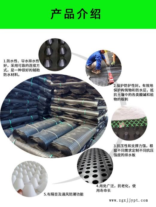 塑料排水板也叫 “建筑夾層塑料板”,是由高抗沖聚苯乙烯(HIPS)制成的,表面配上一層無紡布,從而形成一個組合排水板。塑料排水板是一種用帶支點的塑料平板在建筑各個部位做出整體的空氣夾層,從材料和力學(xué)兩方面進行有效組合,改變了傳統(tǒng)建筑中單純依靠防水層進行“堵”水的防水措施,在建筑防排水、保溫節(jié)能等領(lǐng)域的構(gòu)造原理上提出了比現(xiàn)有技術(shù) 為完善的理念。湖北夾層排水板生產(chǎn)加工,產(chǎn)品自問世以來即成為設(shè)計、開發(fā)商的 產(chǎn)品,它滿足建筑本身的需求,符合現(xiàn)代建筑的發(fā)展趨勢,達到了 在建筑防滲節(jié)能方面的強制規(guī)定。該產(chǎn)品從源頭上截斷了建筑滲漏,并具有保溫、隔熱,以及用于屋面綠化和車庫頂板中具有輕質(zhì)、阻根、蓄水、排水、良好的透氣性等多種功能。 江20塑料排水凸片施工方法。