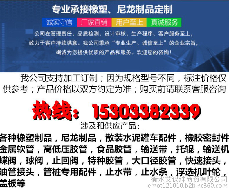 公司技術(shù)力量雄厚,生產(chǎn)設(shè)備先進,擁有國內(nèi)先進的壓延成型機、硫化機、密煉機、大型注膠硫化機等、各種大型數(shù)控加工設(shè)備近30余臺,擁有一系列成套的生產(chǎn)設(shè)備,檢測設(shè)備齊全,擁有獨立的實驗室,各環(huán)節(jié)基本實現(xiàn)全自動化流水線生產(chǎn),經(jīng)過不斷研發(fā)創(chuàng)新,現(xiàn)又增產(chǎn)水泥散裝罐車配件、特種車輛專用配件等產(chǎn)品。 公司產(chǎn)品相繼服務(wù)于國內(nèi)各大型鋼鐵廠、煤場、冶金、電力、船舶、化工、油田、運輸、水泥廠、機械制造、管樁廠、混凝土公司、散裝汽車制造、特種車輛制造等領(lǐng)域。產(chǎn)品注重質(zhì)量優(yōu)先,精益求精,誠信經(jīng)營,在同行中具有很強的競爭力,在此公司誠邀各界新老客戶洽談業(yè)務(wù)、共謀發(fā)展。