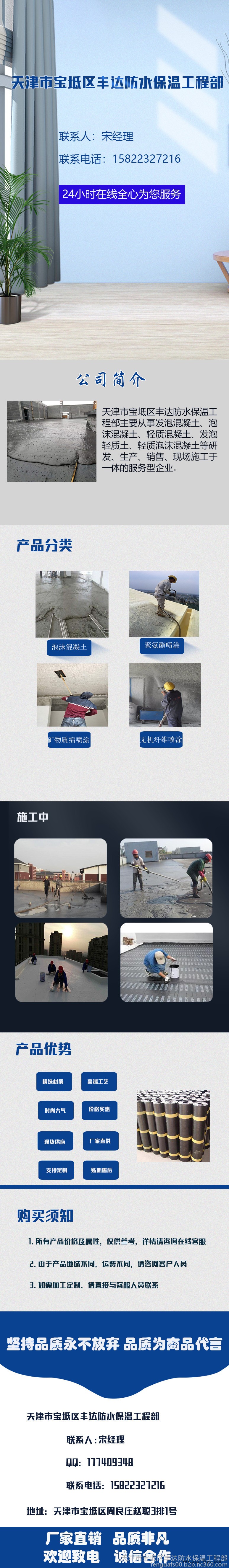 公司:天津市寶坻區(qū)豐達防水保溫工程部 地址:中國天津寶坻區(qū)周良莊趙聰3排1號