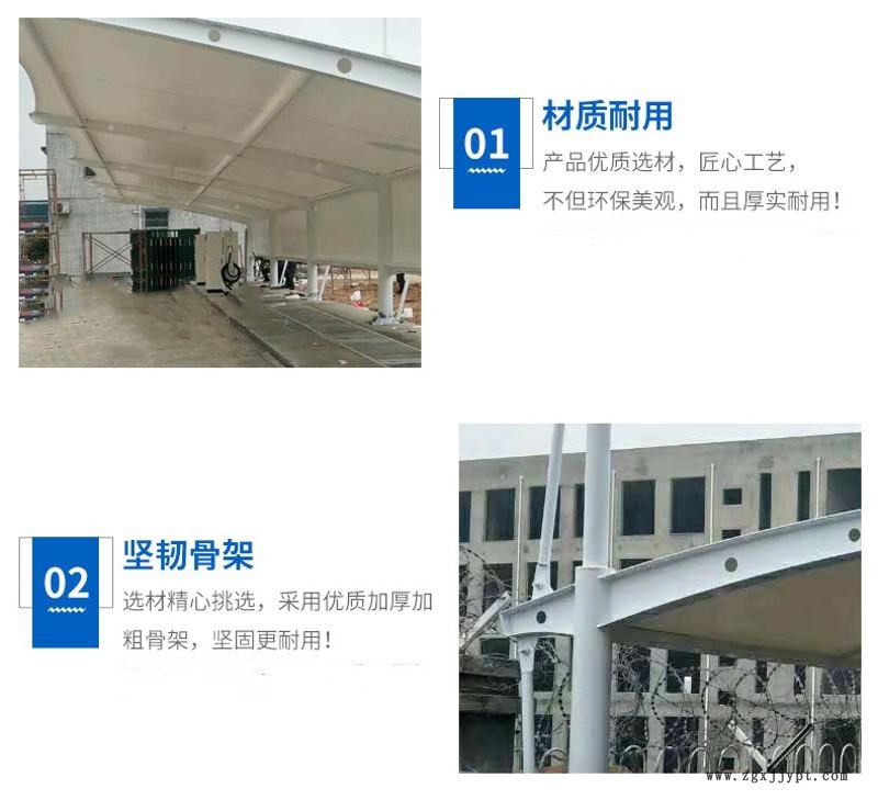臺州市鋼耐膜結構工程有限公司是一間從事金屬結構工程以及空間張拉膜結構工程的開發(fā)、設計、生產、銷售、服務如一體的專業(yè)廠家。 主營產品有: 一:張拉膜雨篷、鋁塑板雨篷、玻璃雨篷、陽光板雨篷; 二:張拉膜車棚、陽光板車棚、彩瓦車棚 、熱合帆布車棚、汽車充電樁車棚、太陽能光伏車棚; 三:不銹鋼崗亭、彩鋼崗亭、鋁塑板崗亭、玻璃崗亭; 四:各種金屬結構廠房、天橋工程; 五:不銹鋼候車亭、路牌、標志等; 企業(yè)自創(chuàng)建以來,堅持以人為本,精益求精,追求品質的經營理念。以良好的企業(yè)文化氛圍,吸引大批來自五湖四海,有著多年金屬結構工程制作的精英。打造出了數支經驗豐富,高效率,高素質的施工隊伍。 公司以質量樹形象,以信譽求發(fā)展,竭誠與社會各界朋友合作,以良好的品質,實惠的價格,用鐵的產品和鋼的信譽,恭候您的光臨和來電。