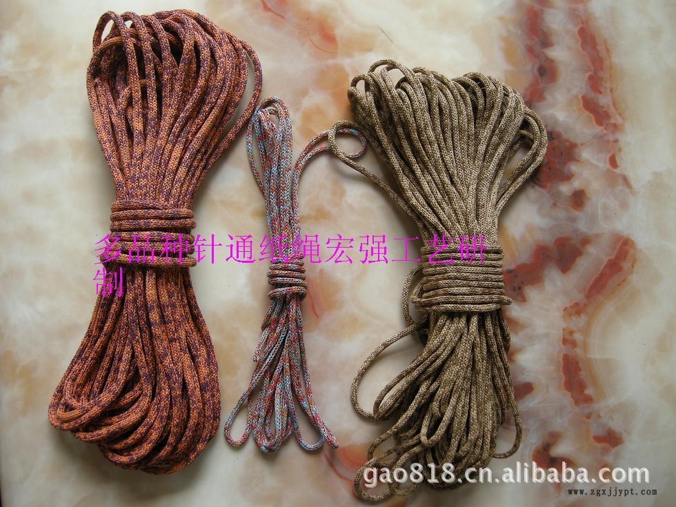 專業(yè)生產(chǎn)各種繩類機(jī)械,以紙,草,麻,為原料.生產(chǎn)有60多個(gè)系列400多種繩的機(jī)械,并配有各種繩類復(fù)合機(jī).同時(shí)可以做出3000多種紙繩,紙布,以合理的價(jià)格供給用戶.大用戶我們可供給紙繩,紙布并可提供成套設(shè)備全面的技術(shù)為客戶服務(wù).對(duì)于客戶新產(chǎn)品我們可幫助研究開發(fā),共同 .用紙做成0.1毫米-0.5毫米的線再經(jīng)過(guò)針通做成各種粗度的繩,可一支線做和多支線針通做出,環(huán)保多色種,可如丙淪和的淪絲繩比美,但本產(chǎn)品手感度好,有強(qiáng)的支環(huán)度,是編織中國(guó)結(jié),手提,帶子,箱包,等的 用料一種用紙絲針通做成的繩子,有高強(qiáng)度的吸水性,并能自動(dòng)導(dǎo)水,每條紙絲的粗度為0.06毫米,可用一支或多支針通成方型,三角型,圓型,有規(guī)則多邊型,同時(shí)可以放入各種花草種子,以及種子需要的養(yǎng)分.通繩研制 6針網(wǎng)式有一定硬度,高軟度,粗度有:1MM,1.5MM,2MM.3MM,4MM,5MM價(jià)格為,0.04一0.25元一米. 飛線針通紙繩有硬度 6針式針通繩高強(qiáng)拉度小孔型粗度有:1MM,1.5MM,2MM.3MM,4MM,5MM價(jià)格為,0.06一0.30元一米.