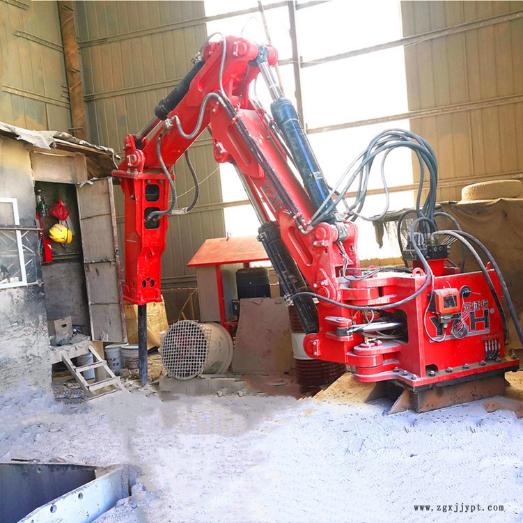 多功能工程機械手主要由4個大部分組成:液壓破碎錘(破碎巖石)、大小臂作業(yè)系統(tǒng)(斗桿)、液壓油站(動力來源)以及控制器(操作系統(tǒng))。本產(chǎn)品為固定式電動全液壓破碎機,主要用于:礦山、采石場,砂石骨料場、冶金鑄造廠、水泥廠、化工廠等露天地上施工環(huán)境或地下礦井溜井機口和格篩處,對大塊礦石進行二次免爆破碎,以便運輸及提升。