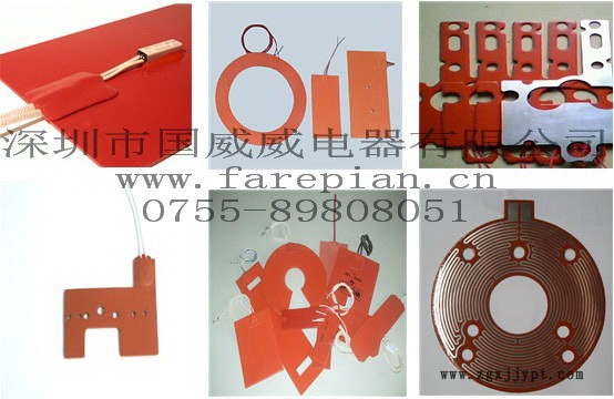 硅橡膠加熱器是以另一種角度對(duì)『熱』的新定義所構(gòu)想設(shè)計(jì)出來的新產(chǎn)品。是一種軟性可彎曲的薄膜狀電熱器件。它是把泊狀、絲狀的金屬發(fā)熱體均布于涂布有耐高溫硅橡膠的玻璃纖維布間、經(jīng)高溫模壓而成.其體薄,通常厚0.8~1.5MM、質(zhì)輕,一般每平方1.3~1.9千克.通電發(fā)熱迅速、溫升快,具有發(fā)熱面大、發(fā)熱均勻、耐候、耐腐、環(huán)保、阻燃、安裝方便、壽命長(zhǎng)、絕緣強(qiáng)度高的特性。在眾多的電熱器件中獨(dú)成一支。可取代一般金屬加熱器。由于硅橡膠加熱器基本上不受尺寸限制,大可至數(shù)平方米,小可至幾平方厘米,且可據(jù)需要設(shè)計(jì)成條件使用電壓的各種形狀的發(fā)熱體,使其越來越多地應(yīng)用于各領(lǐng)域。