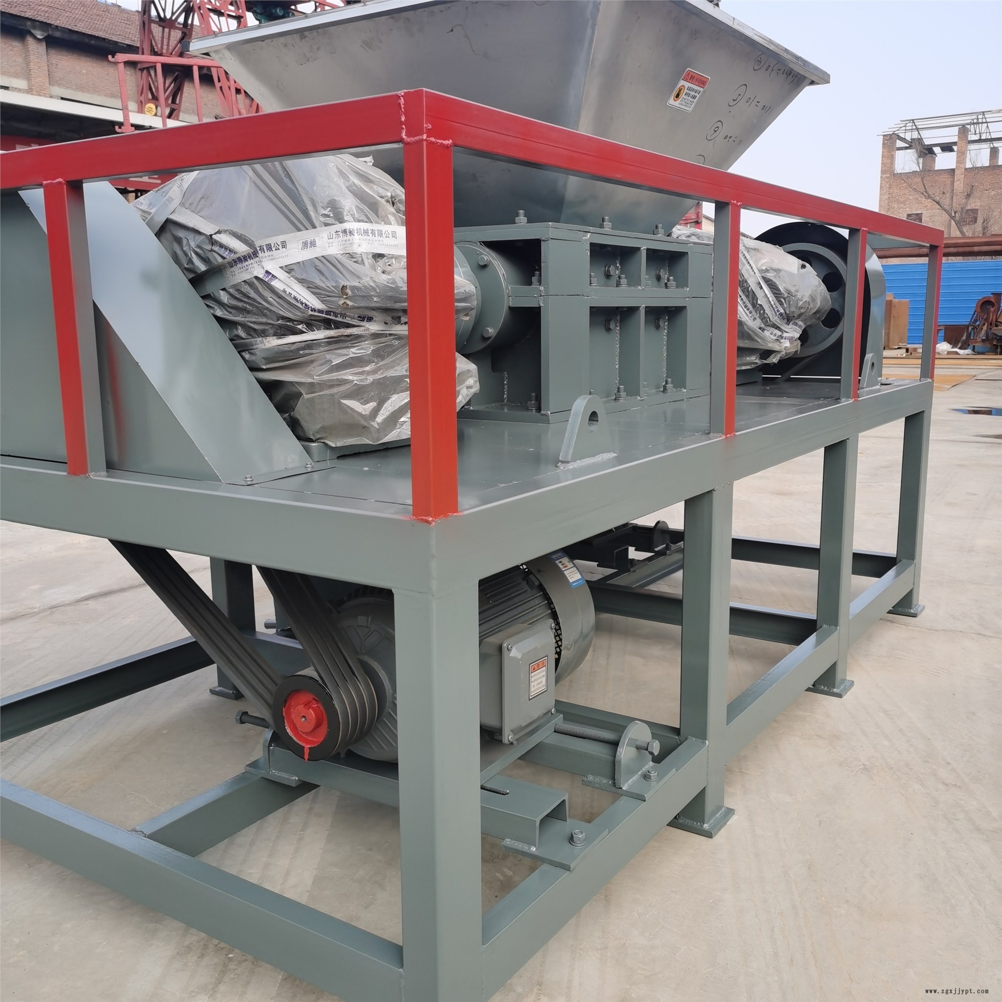 1.本品對于一軸粉碎機難粉的大塊料、筐料 、管材、板材、木材、輪胎、廢舊金屬桶、大卷薄膜都可破碎;