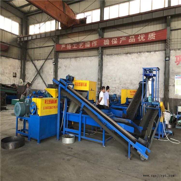 廢舊輪胎粉碎機(jī)是一款處理廢舊輪胎、貨車輪胎、鋼絲輪胎等原材料進(jìn)行破碎,將鋼絲和橡膠分離,終得到5-60目左右的膠?;蚰z粉,是鋼絲胎膠粉生產(chǎn)專用的破碎設(shè)備。廢舊輪胎粉碎機(jī)由廢舊鋼絲輪胎切圈口機(jī)、切條機(jī)、切塊機(jī)、800輥筒磨粉機(jī)、雙磁選機(jī)、旋風(fēng)上料機(jī)、篩選機(jī)、單磁選機(jī)這幾部分組成。