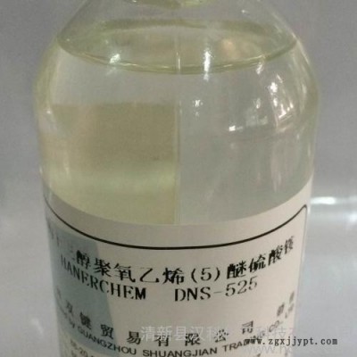異構(gòu)十三醇聚氧乙烯醚硫酸銨(HANERCHEM DNS-525)是一種陰-非離子表面活性劑,具有良好的洗滌、乳化、分散、濕潤(rùn)和滲透等性能。在軟水、硬水及較寬的 PH 值范圍內(nèi)(如在強(qiáng)酸、強(qiáng)堿中)穩(wěn)定。廣泛用于家用和工業(yè)洗滌、皮革、紡織、金屬去油、農(nóng)藥等行業(yè)。在乳液聚合方面,它可作為乳化劑和穩(wěn)定劑使用,可有效的控制膠乳粒徑大小,用于醋酸乙烯酯、氯乙烯、丙烯酸酯、苯乙烯和苯丙體系,以滿足聚合物對(duì)耐水、耐酸堿、耐擦洗性的要求。