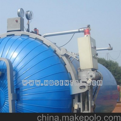 (硫化罐是橡膠制品生產(chǎn)中應用最早的硫化設備,多年來盡管其他硫化設備有很大發(fā)展,但直到今天某些橡膠制品(膠管、膠鞋、膠輥)的硫化還離不開它,就是模制品、膠布制品盒電纜制品也有應用硫化罐硫化的,可見,硫化罐仍然是硫化的基本設備之一。) §2-1用途與分類 一、用途與分類 1、用途:臥式硫化罐主要用于硫化飛模型橡膠制品,如膠鞋、膠管、電纜、膠輥盒膠布等,有時,也用于硫化模型橡膠制品。 2、分類 ?。?)按硫化的橡膠制品分 膠鞋硫化罐 膠管硫化罐 膠布和膠輥硫化罐 ?。ㄆ浣Y(jié)構(gòu)基本類同,但硫化膠布、膠輥用的硫化罐為了防止在硫化過程中橡膠受熱軟化流延,專門設有膠布卷或膠輥轉(zhuǎn)動傳動裝置。另如膠管硫化用的硫化罐,一般采用直接蒸汽加熱硫化,罐內(nèi)不設熱空氣循環(huán)裝置等。) ?。?)按硫化罐罐體的結(jié)構(gòu)形式分: 直接加熱硫化罐 間接加熱硫化罐 ?。ㄖ苯蛹訜崃蚧薰摅w直接通入蒸汽加熱硫化,間接加熱硫化罐大多采用罐內(nèi)裝設蒸汽散熱排管加熱硫化。過去間接加熱硫化罐采用夾套結(jié)構(gòu),在夾套中通入蒸汽加熱硫化。但這種結(jié)構(gòu)制造麻煩,現(xiàn)已基本不用。此外,為了獲得較高的硫化溫度,近年來發(fā)展了一種采用電加熱的硫化罐) §2-2 規(guī)格表示和技術(shù)參數(shù) 1、規(guī)格表示 臥式硫化罐采用“罐體內(nèi)徑×有效長度”單位m,型號用XL表示,對于硫化制品和膠鞋用的臥式硫化罐,則在XL后加字母J。所以硫化罐的型號表示方法為:如XL-J0.8 ×11、 XL-J1.5 ×3等。 2、技術(shù)參數(shù) 罐體內(nèi)徑,加熱方式,工作介質(zhì),工作壓力,工作溫度,外形尺寸等。 §2-3 基本結(jié)構(gòu) 臥式硫化罐的工作壓力一般在1.2MPa以下,屬于低壓一類容器,大都呈單壁圓筒狀結(jié)構(gòu),由罐體、罐蓋及其開關(guān)和閉鎖裝置、加熱裝置和其他輔助裝置等構(gòu)成。